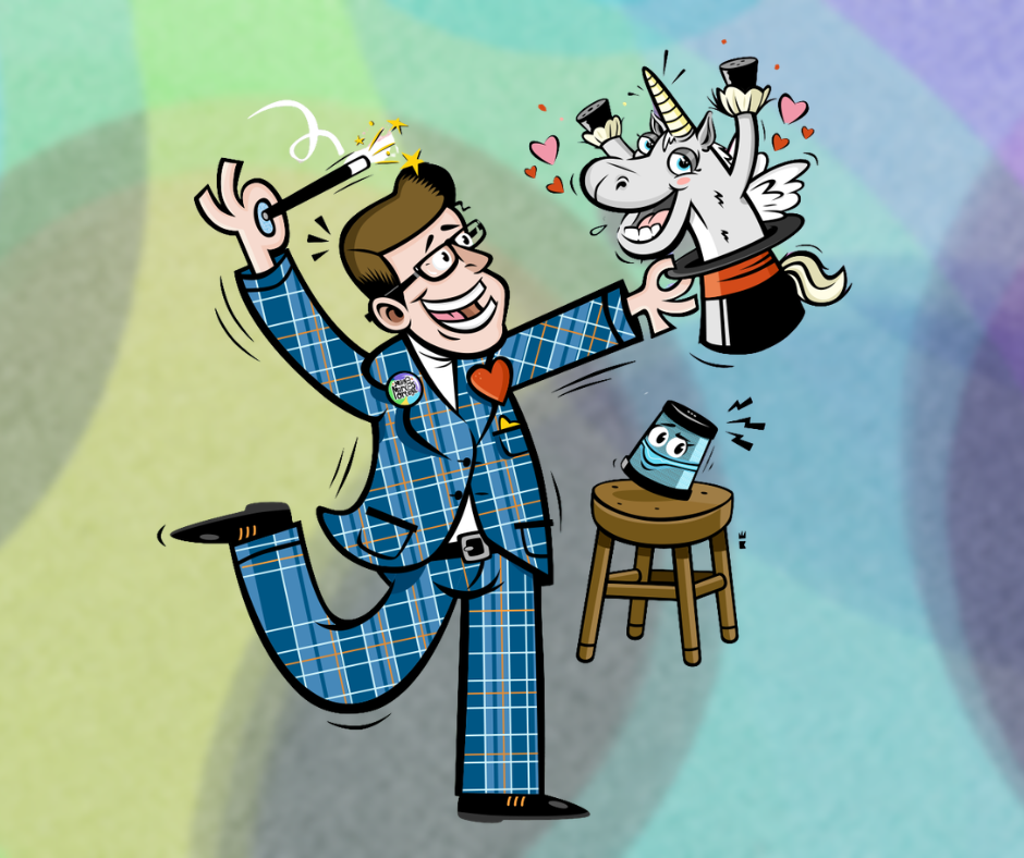 Contrata un mago cinco estrellas (lo dice Google, no yo) para espectáculos en unas fiestas de tu pueblo, un mago para un cumpleaños de tus hijos, un mago para la cena de tu empresa, un mago para la primera comunión de tu hija, un mago para una fiesta fin de curso en el cole de tus hijos, un mago para una despedida de soltero/soltera de tus amigos/as, un mago para unas bodas de oro… espera que tome aire.