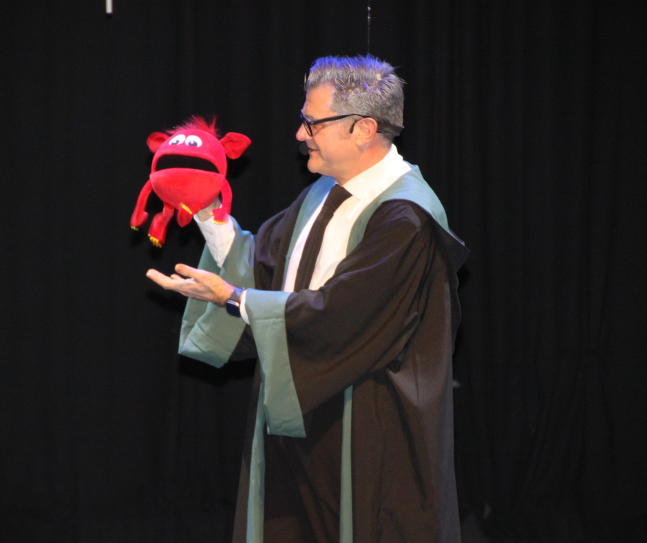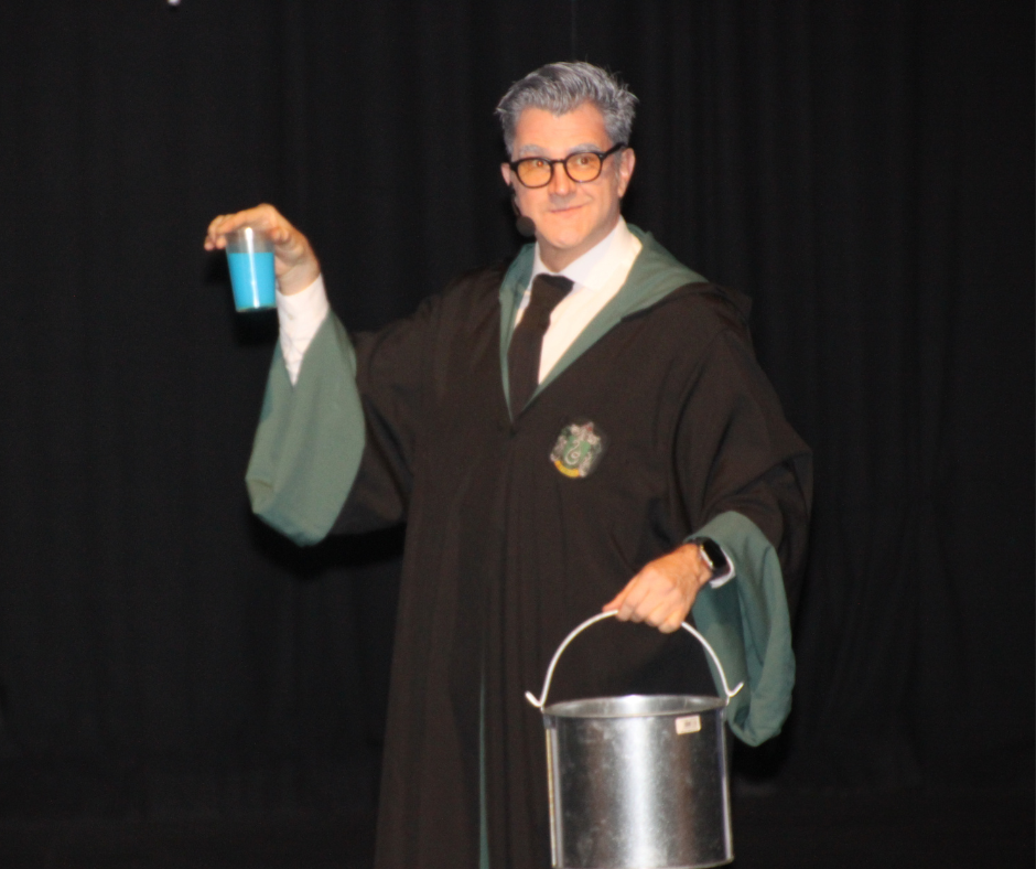 Profesor experto en hechizos y pociones. Pero hoy necesita ayuda. Porque la gran poción solo funciona si muchas personas creen en la magia al mismo tiempo. Por eso el público participa.